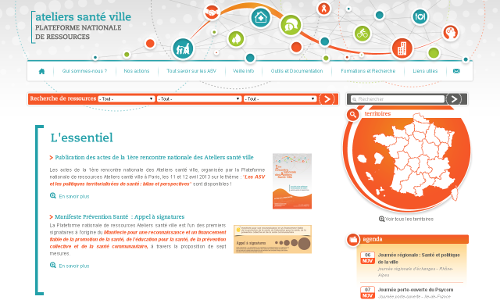 - Développement des fonctionnalités spécifiques du site : régions, actualités, offres d'emploi, appels à projets, agenda