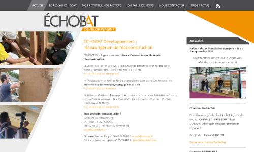 Echobat Développement est un réseau d’acteurs économiques de l’éco-construction ayant pour but d'organiser et déployer des dynamiques collectives pour développer le marché de l’éco-construction sur les Pays de la Loire.